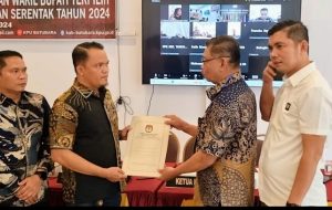 Usai Penetapan Bupati dan wakil Bupati terpilih ,KPU Batu Bara menyerahkan Salinan Surat Penetapan kepada Tim Pasangan Baharuddin Siagian – Syafrizal,Bawaslu Batu Bara dan KesbangPol Kabupaten Batu Bara.
