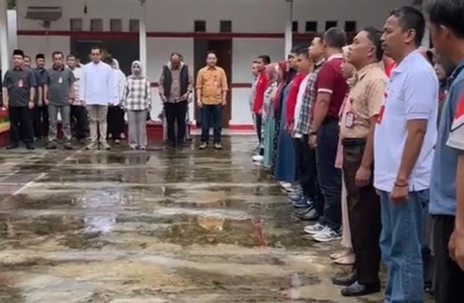 Cianjur. Mitrapolisitv.com -Dinas Pendidikan Pemuda dan Olahraga ( Disdikpora ) Kabupaten Cianjur, setiap pagi sebelum masuk jam kantor selalu rutin melaksanakan apel pagi atau upacara di halaman dalam Disdikpora.