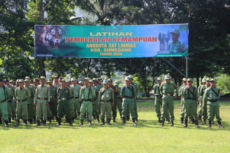 Sumedang – Guna meningkatkan Kamtibmas serta kualitas anggota Linmas Kodim 0610/Sumedang menyelenggarakan latihan Pembekalan kemampuan anggota Satlinmas Kabupaten Sumedang bertempat di Lapangan Makodim 0610/Smd Jln. Pangkor No 164 Kelurahan Pasanggrahan Baru Kecamatan Sumedang Selatan Kabupaten Sumedang, Kamis(01/02/2024).