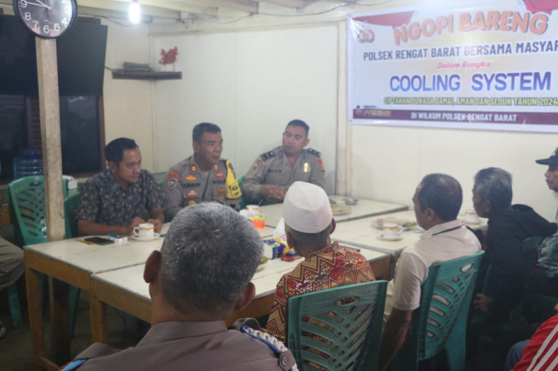 MitraPolisiTvOnline.Com…INHU       27/9/2024-Dalam upaya menjaga ketentraman dan keamanan di Desa Pekan Heran, Kapolsek Rengat Barat, AKP Buha Siahaan, SH, mengadakan acara “Ngopi Bareng Cooling System” dengan perangkat desa, tokoh masyarakat (Tomas), dan tokoh pemuda (Toda ). Acara ini dihadiri oleh Penjabat Kepala Desa, As’at Habsah, dan berlangsung dalam suasana kekeluargaan yang hangat.