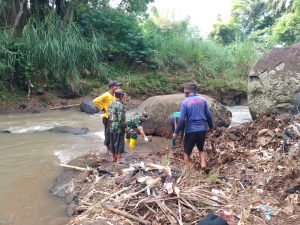 Aksi Sigap Babinsa desa sukapancar Koramil 1206/Pagerageung Kodim 0612/Tasikmalaya Kerja Bakti Bersama Masyarakat Bersihkan Sampah dan pohon bambu tumbang di Aliran Sungai Cikidang