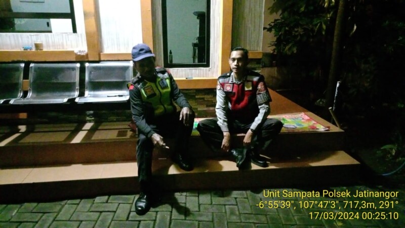 JATINANGOR, SUMEDANG – Personil Polsek Jatinangor jajaran Polres Sumedang Polda Jabar, Aipda Opik Nopiana,.Amd, Kep, bersama BRIPKA Jujun Juanda melaksanakan giat patroli Bule Light di Antisipasi balapan liar dan perang sarung menjelang sahur di wilkum Polsek Jatinangor.