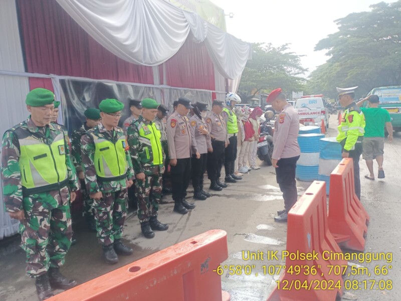 Cimanggung_Sumedang. Peaksanaan Apel Pagi bertempat di Pos Pengamanan Cimanggung Polres Sumedang Polda Jabar dalam rangka pelayanan Pos terpadu pada Polda Jabar Nomor R/Renops/9/III/OPS/1.2.3/2024 Tanggal 25 Maret 2024 Tentang Pengamanan Ketupat Lodaya 2024 Personil pengamanan Oprasi Ketupat Lodaya- 2024 yang terlibat dalam Pos Pengamanan Ketupat Lodaya Tahun 2024. Jum’at (12/04/2024).