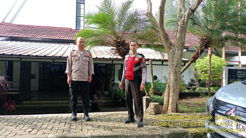 JATINANGOR, SUMEDANG – Berdasarkan petunjuk serta arahan Kapolres Sumedang, AKBP Joko Dwi Harsono,.SIK, serta Wakapolres KOMPOL Meilawaty, SH, SIK, MM., melalui Kapolsek Jatinangor Kompol Rogers Thomas,.S.H, kegiatan ibadah di pimpin IPTU Solihin,. berikut personil gabungan piket fungsi Polsek Jatinangor dengan melibatkan PAMDAL IPDN melaksanakan monitoring dan pengamanan jalannya kegiatan Ibadah Umat Kristiani di Gereja maupun Rumah Ibadah wilayah Kecamatan Jatinangor Kabupaten Sumedang.