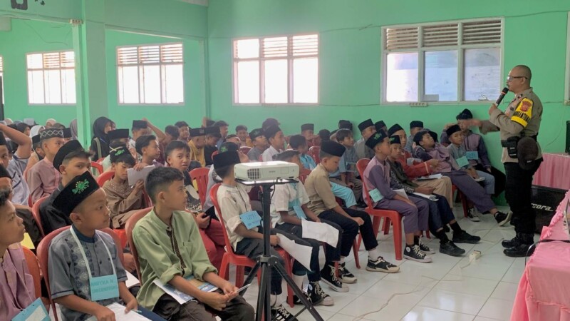 Cimanggung_Sumedang. Bhabinkamtibmas Polsek Cimanggung Polres Sumedang Polda Jabar AIPDA DANI RAMDANI HIDAYAT dan AIPDA AGUS SETIAWAN melaksanakan kegiatan penyuluhan ke siswa/i MPLS ( masa pengenalan lingkungan sekolah ) di Mts Yasta Bunter Desa Cihanjuang Kecamatan Cimanggung Kabupaten Sumedang. Jum’at (19/07/2024).