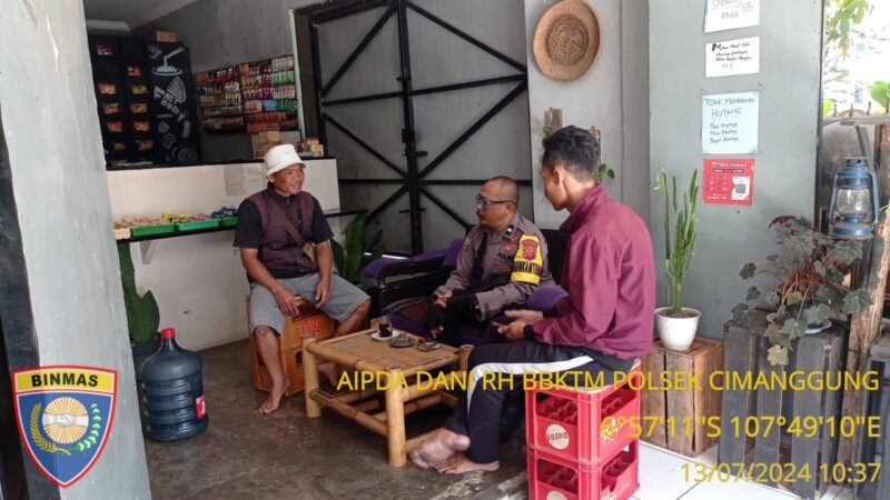 Cimanggung-Sumedang. Bhabinkamtibmas Desa Cihanjuang Polsek Cimanggung Polres Sumedang Polda Jabar AIPDA DANI RAMDANI HIDAYAT laksanakan sambangi warga Dusun bunter guna monitoring keamanan dan ketertiban masyarakat. Sabtu (13/07/2024).