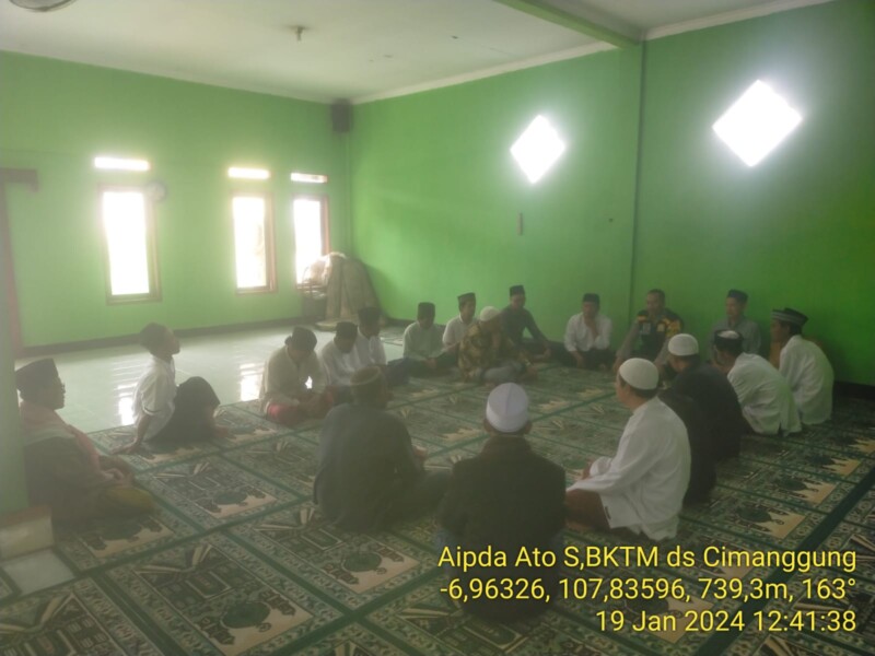 Cimanggung_Sumedang.mitrapolisitv.com Bertempat di masjid jami Al-Barokah Dsn Cibubuhan rt 02/22 Desa Cimanggung Kecamatan cimanggung Kabupaten Sumedang. Telah dilaksanakan Jum’at Curhat menyampaikan kamtibmas menjelang pemilu tahun 2024 di kecamatan Cimanggung Kabupaten sumedang. Jum’at (19/01/2024).