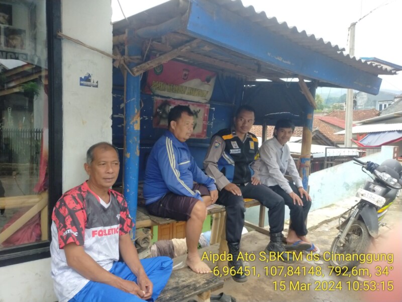 Cimanggung_Sumedang. Dalam rangka mempererat tali silaturahmi antara warga masyarakat binaan dengan bhabinkamtibmas Desa Cimanggung Polsek Cimanggung Polres Sumedang Polda Jabar AIPDA ATO SUGIARTO melaksanakan giat sambang ke warga Desa Cimanggung Kecamatan Cimanggung Kabupaten Sumedang. Jum’at (15/03/2024).
