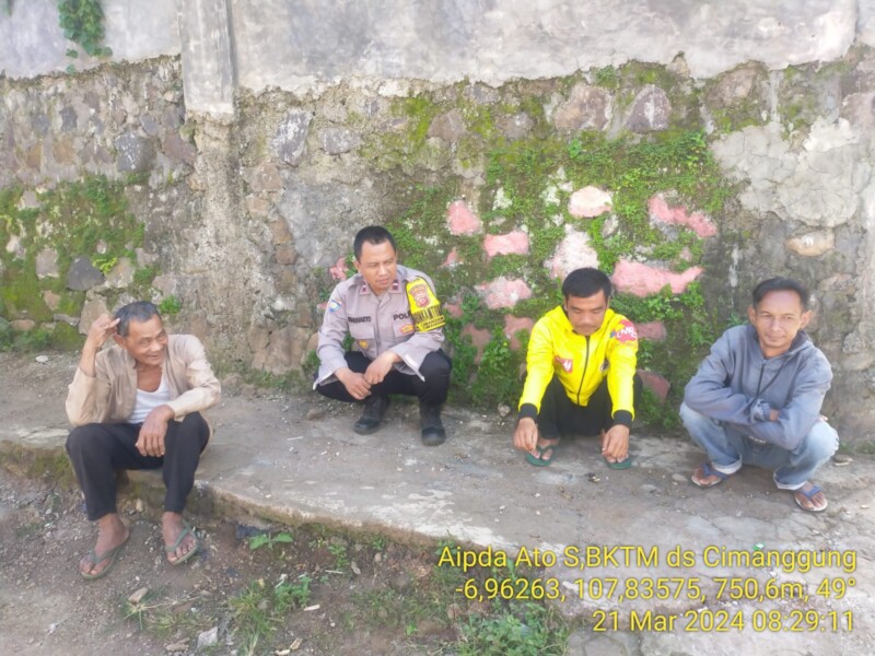 Cimanggung_Sumedang. Dalam rangka mempererat tali silaturahmi antara warga masyarakat binaan dengan bhabinkamtibmas Desa Cimanggung Polsek Cimanggung Polres Sumedang Polda Jabar AIPDA ATO SUGIARTO melaksanakan giat sambang ke warga Desa Cimanggung Kecamatan Cimanggung Kabupaten Sumedang. Kamis (21/03/2024).