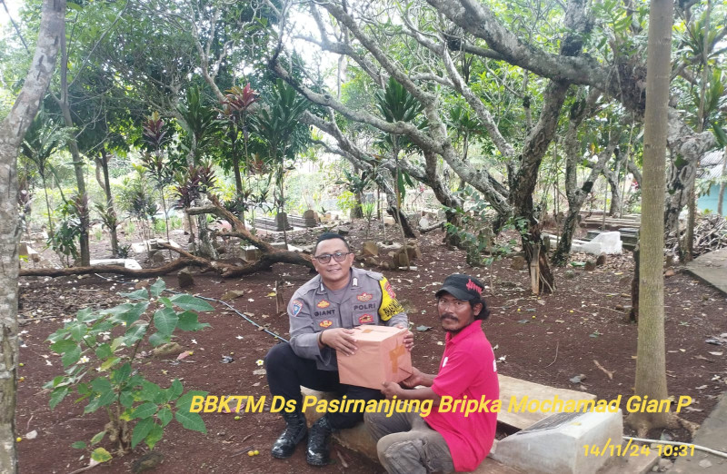 Cimanggung_Sumedang. Bhabinkamtibmas Desa Pasirnanjung Polsek Cimanggung Polres Sumedang Polda Jabar BRIPKA MOCHAMAD GIAN PRATAMA telah melaksanakan kegiatan silaturahmi kamtibmas sekaligus memberi sarana kontak berupa Sembako Kepada Warga Dusun Damur Rt 03/06 Desa Pasirnanjung Kecamatan Cimanggung Kabupaten Sumedang Atas Nama Ois usia 51 Tahun, selaku penjaga Makan TPU Damur yang sudah Bekerja Selama 10 Tahun. Kamis (14/11/2024).