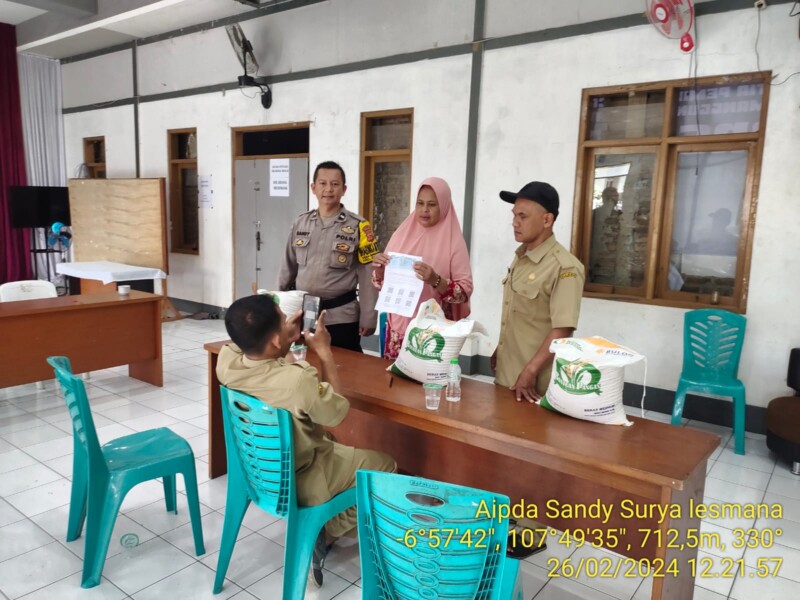 Cimanggung_mitrapolisitv.com Sumedang. Bertempat Aula Desa Sindangpakuon Kecamatan Cimanggung Kabupaten Sumedang, Bhabinkamtibmas Polsek Cimanggung Polres Sumedang Polda Jabar AIPDA SANDY SURYA LESMANA Monitoring giat Pembagian Bantuan Pangan nasional Cadangan Beras Pemerintah ( CBP ) dari Bulog melalui Pos Indonesia Priode Bulan Pebruari 2024. Senin (26/02/2024).