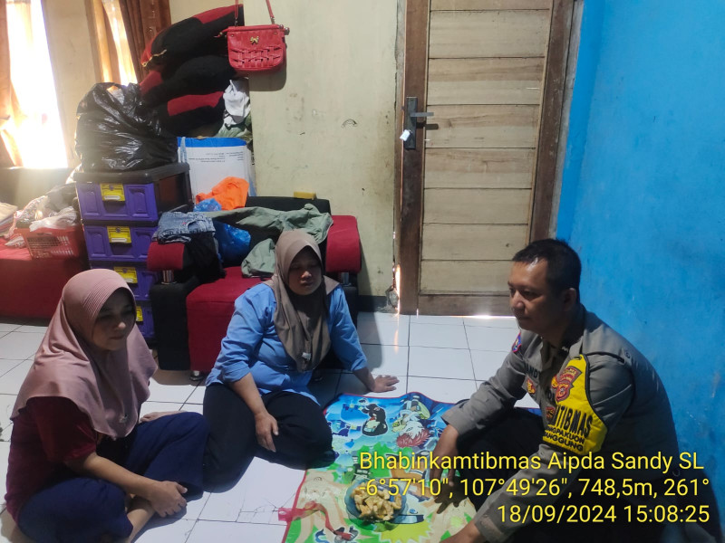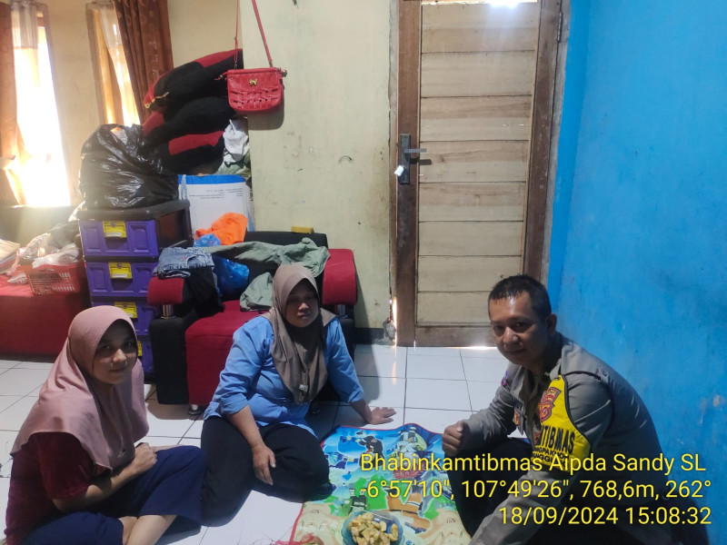 Cimanggung_Sumedang. Bhabinkamtibmas Desa Sindangpakuon Polsek Cimanggung Polres Sumedang Polda Jabar AIPDA SANDY SURYA LESMANA melaksanakan kegiatan sambang dan silaturahmi kambtibmas ke warga masyarakat dalam rangka pelaksanaan BEYOND TRUST PRESISI di Wilayah Desa Sindangpakuon Kecamatan Cimanggung Kabupaten Sumedang. Rabu (18/09/2024).