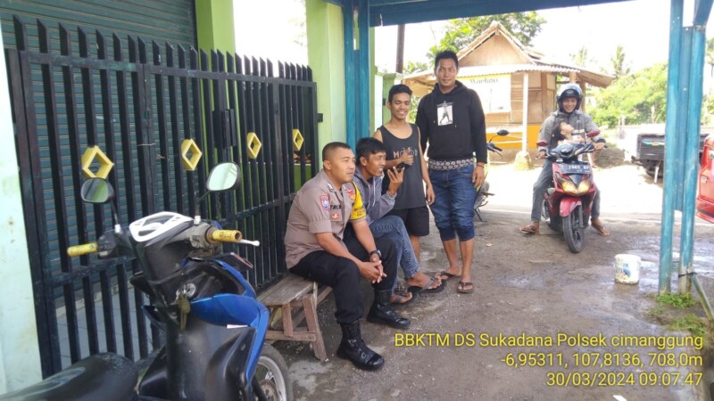 Cimanggung_Sumedang. Dalam rangka mempererat tali silaturahmi antara warga masyarakat binaan dengan bhabinkamtibmas Desa Sukadana Polsek Cimanggung Polres Sumedang Polda Jabar BRIPKA TRI WIDODO melaksanakan giat sambang ke warga Desa Sukadana Kecamatan Cimanggung Kabupaten Sumedang. Sabtu (30/03/2024).