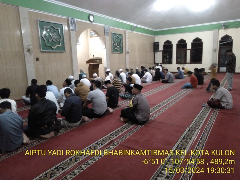 Sumedang-Pada hari Jum’at tanggal 15 Maret 2024, pukul 19.30 WIB hingga selesai, bertempat di Masjid Al-Ikhlas, Komplek Pusdai Islamik Centre, Jln Kutamaya, Kelurahan Kota Kulon, Kecamatan Sumedang Selatan, Kabupaten Sumedang, Bhabinkamtibmas Kelurahan Kota Kulon Polsek Sumedang Selatan Polres Sumedang, AIPTU YADI ROKHAEDI, melaksanakan shalat Isya dan shalat Sunat Taraweh malam ke lima di bulan suci Ramadhan 1445H, dipimpin oleh H. EGI MAULANA S.ag.