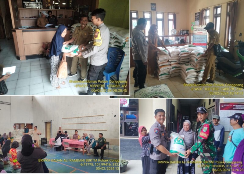 SUMEDANG,mitrapolisitv.com 5 Februari 2024- Bhabinkamtibmas Polsek Conggeang, dengan dipimpin oleh AKP Suratman S.Sos, melakukan kegiatan monitoring pembagian beras dari Badan Pangan Nasional (BPN) untuk warga masyarakat kurang mampu yang berada di wilayah Kecamatan Conggeang. Kegiatan ini dilaksanakan berdasarkan petunjuk serta arahan langsung dari Kapolres Sumedang, AKBP Joko Dwi Harsono S.I.K, serta Wakapolres, KOMPOL Meilawaty, SH, SIK, MM, dan Kapolsek Conggeang.