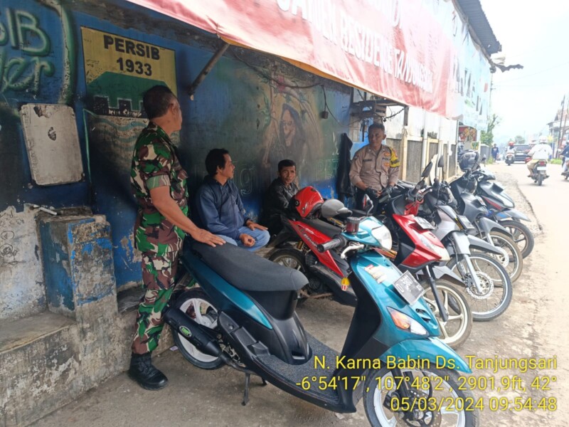 Pada hari Selasa, tanggal 05 Maret 2024, pukul 09.30 WIB hingga selesai, Bripka Nanang Karna sebagai Bhabinkamtibmas Desa Tanjungsari dari Polsek Tanjungsari Polres Sumedang Polda Jawa Barat, bersama Babinsa Pelda Miswanto melaksanakan kegiatan sambang dan silaturahmi kamtibmas kepada para Opang (Ojeg Pangkalan) di wilayah Desa Tanjungsari, Kecamatan Tanjungsari, Kabupaten Sumedang. Kegiatan tersebut dilakukan dalam rangka pelaksanaan Quick Wins Presisi Polri.