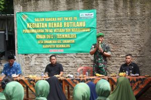 Dandim 0612/Tsm (Letkol Arm. Yan Octa Rombenanta, S.Sos), menyampaikan Pembangunan rumah tidak layak huni merupakan wujud perhatian dari pihak Kodim 0612/Tsm kepada para veteran.