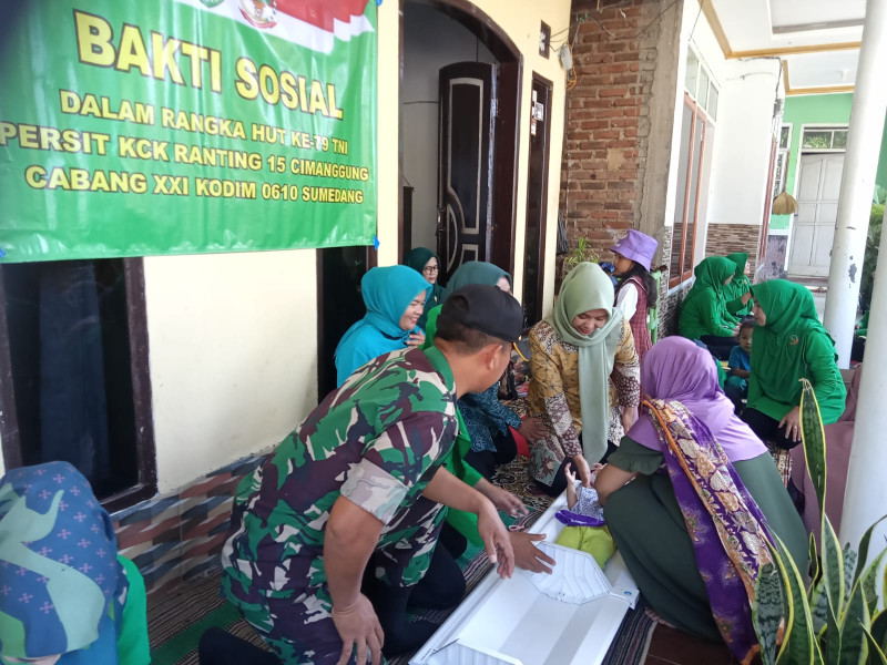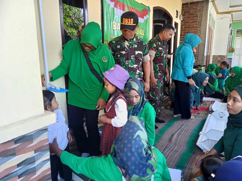Sumedang- Danramil 1014/Cimanggung Kodim 0610/Sumedang Lettu Inf Nanang Koswara beserta anggota dan Ketua Persit KCK Ranting 15 Cimanggung beserta anggota melaksanakan Bakti Sosial penyelenggaraan kegiatan Posyandu dalam rangka memperingati HUT TNI ke-79 bertempat di Posyandu Tulip 1 dusun Girilaya RT 01/01 Desa Pasirnanjung Kecamatan Cimanggung Kabupaten Sumedang.Jum’at(11/10/2024)