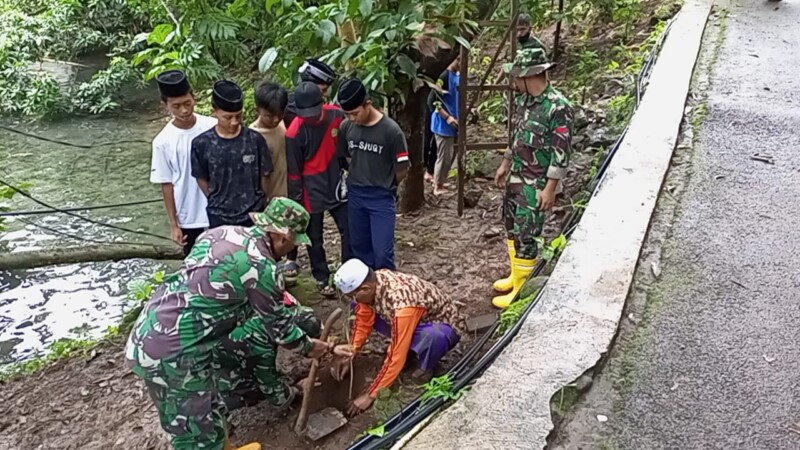 Sumedang-mitrapolisitv.com Anggota Koramil 1007/Conggeang Kodim 0610/Sumedang dipimipin oleh Pelda Didi Nuryadindin melaksanakan Karya Bakti pembersihan dan penanaman pohon di Pondok pesantren Asyrofudin Dusun Cipicung RT.12/RW.04 desa Conggeang wetan Kecamatan Conggeang Kabupaten Sumedang. Rabu(31/01/2024)