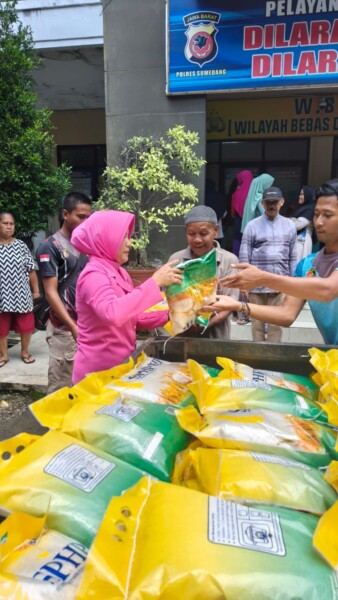 Kepedulian anggota Bhayangkari Polres Sumedang dalam membantu meringankan masyarakat untuk mendapatkan beras murah.