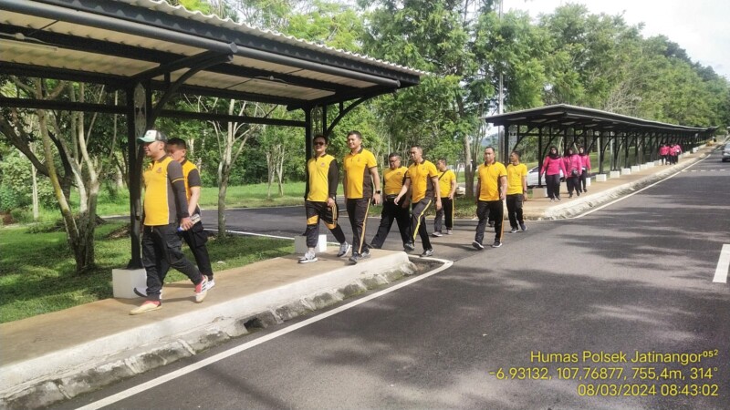 JATINANGOR, SUMEDANG – Untuk menjaga tubuh tetap bugar dan sehat Polsek Jatinangor tiap hari jum’at melakukan kegiatan olahraga bersama. Kali ini, jumat sehat diisi dengan kegiatan olahraga jalan santai dari Mako Polsek Jatinangor menuju ke Joging track Kampus ITB Jatinangor yang dipimpin langsung oleh Kapolsek Jatinangor bersama Ibu Ketua Ranting Jatinangot.