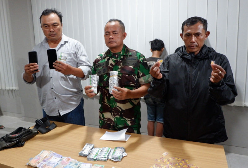 CIANJUR – Press Release terkait penangkapan terhadap pengedaran Obat Obatan terlarang yang tergolong Daftar “G” jenis eximer, trihexyphenidyl dan tramadol disampaikan oleh Kepala Staf Kodim 0608/Cianjur Mayor Arm Nanda Supriyatna didampingi Dan Unit Intel Kodim 0608/Cianjur Letda Inf Khoharudin dan Dansub 1 Unit Intel Kodim 0608/Cianjur Peltu Diki terhadap 2 orang pelaku yang tertangkap tangan telah melakukan transaksi pengedaran Obat Obatan terlarang terhadap pelaku berinisial sdr. B alias A umur 26 tahun pekerjaan pemilik bengkel motor dan sdr. AF umur 18 tahun pekerjaan monitor di bengkel motor tersebut, keduanya beralamat di kampung Cimuncang desa Mekarsari kecamatan Cikalongkulon kabupaten Cianjur.