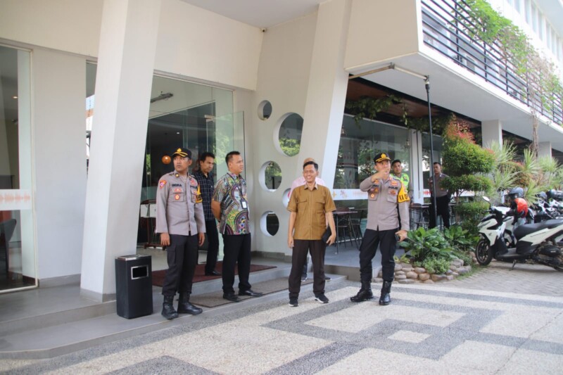 Mitrapolisitv.com Pringsewu- Polres Pringsewu bersama KPU melakukan kordinasi dan pengecekan lokasi di Hotel Urban Pringsewu untuk persiapan rapat pleno rekapitulasi suara Pemilu 2024 tingkat Kabupaten Pringsewu, Selasa (27/22024). Tujuan pengecekan ini adalah untuk memastikan kesiapan sarana, prasarana, dan metode keamanan yang akan diterapkan.