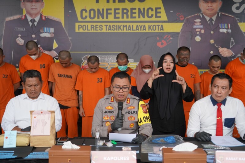 Pada kesempatan itu, dihadirkan 11 Tersangka termasuk 1 diantaranya Seorang Ibu Rumah Tangga berhasil diamankan Oleh Sat Narkoba Polres Tasikmalaya Kota dalam Kurun Waktu 3 Minggu selama bulan Mei 2024 di Wilayah Hukum Polres Tasikmalaya Kota.