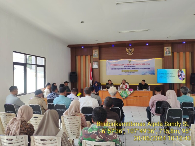 Cimanggung_Sumedang. Kapolsek cimanggung berserta Bhabinkamtibmas desa sindangpakuon nenghadiri kegiatan Pemberdayaan Lembaga Kemasyarakatan dengan kegiatan Reumpug Stunting dan Kemiskinan tingkat kecamatan tahun anggaran 2024 dalam rangka pelaksanaan BEYOND TRUST PRESISI di Wilayah Desa Sindangpakuon Kecamatan Cimanggung Kabupaten Sumedang. Kamis (20/06/2024).