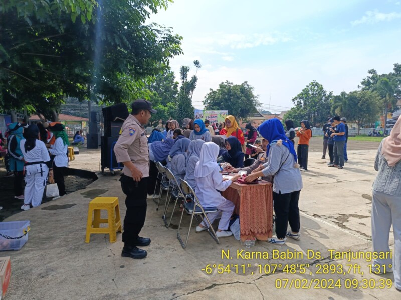 Sumedang mitrapolisitv.com Kapolsek Tanjungsari, Kompol Achmad Nurzaman, SH. MSI, memimpin kegiatan senam sekaligus skrining kesehatan dan penyuluhan Germas (Gerakan Masyarakat Hidup Sehat) bersama petugas Pemilu 2024 tingkat Kecamatan Tanjungsari. Kegiatan ini dilaksanakan di dua PKM (Pusat Kesehatan Masyarakat), yaitu PKM Tanjungsari di Alun-alun Tanjungsari, dan PKM Margajaya di Halaman Puskesmas Margajaya.