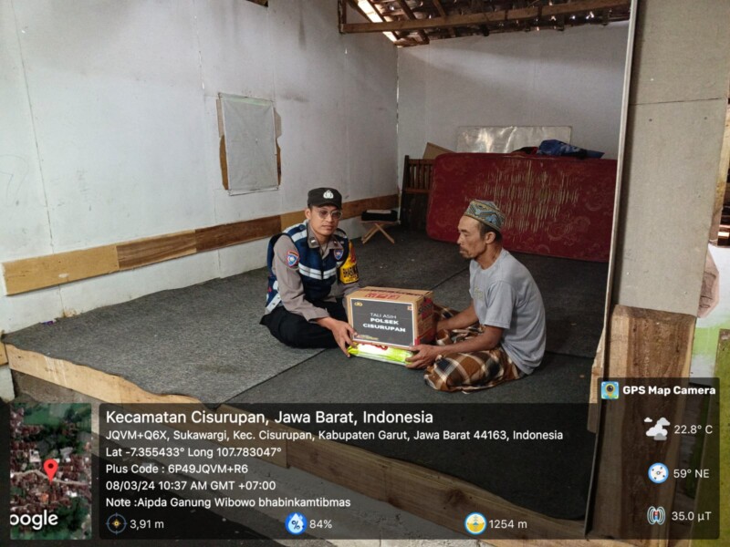 Kapolsek Cisurupan IPTU Asep Saepudin, S.H. didampingi anggota Bhabinkamtibmas Desa Sukatani Aipda Ganung Wibowo melaksanakan kegiatan Jum’at Berkah dengan berkunjung bersilaturahmi dan memberikan tali asih kepada Bapak Ohib (60) berprofesi sebagai guru ngaji di wilayah tersebut.