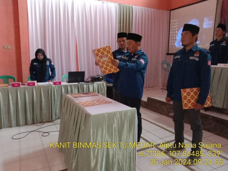 Berdasarkan petunjuk dan arahan Kapolres Sumedang AKBP Joko Dwi Harsono SIK serta Wakapolres Kompol Meilawaty, SH, SIK, MM, Kanit Binmas Aiptu Nana Sujana, hadir dalam acara pelantikan Kelompok Penyelenggara Pemungutan Suara (KPPS) Desa Jingkang Kecamatan Tanjungmedar. Kegiatan tersebut dipimpin oleh Ketua PPS Desa Jingkang Sdr Aang, dihadiri oleh Anggota PPK, Anggota Panwascam Tanjungmedar, Kepala Desa,Kanit Binmas, Babinsa Desa Jingkang Serka Ojang, Ketua MUI, Ketua KPPS sebanyak 13 orang yang merangkap anggota KPPS sebanyak 91 orang se-Desa Jingkang. bahwa kegiatan tersebut dilaksanakan sebagai tahapan dalam Pemilu 2024 selama dalam pelaksanaan aman dan kondusif