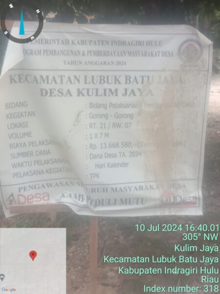 MitraPolisiTvOnline.Com..INHU..Salah Satu Desa Di Kec.Lubuk Batu Jaya Kab.Indragiri Hulu Provinsi Riau Sengaja Membesarkan Anggaran Pembangunan Gorong-Gorong Yang Volume Panjang 7 meter Dan Lebar 1 meter Sesuai Papan Informasi (10/07/2024)