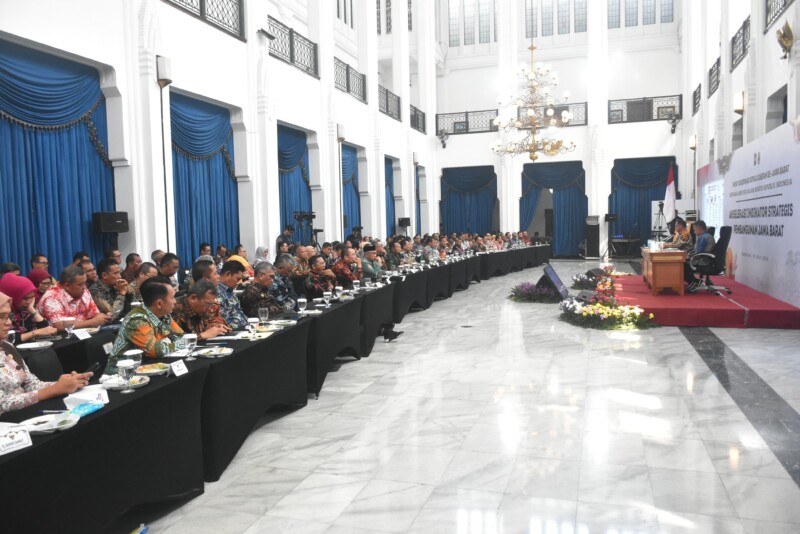 Rakor dengan Tema “Akseleresi Indikator Strategis Pembangunan Jawa Barat” tersebut dihadiri oleh para Pejabat Tinggi Madya Kemendagri, Pj Gubernur Jawa Barat Bey Machmudin, unsur Forkopimda Jabar, Sekda Jabar, serta para Bupati dan Walikota se-Jawa Barat.