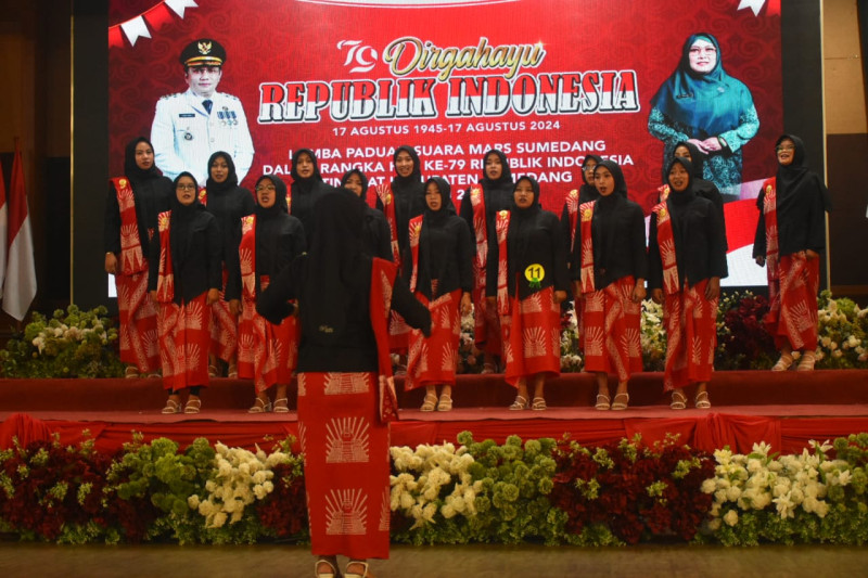 “Kami ingin agar Mars Sumedang lebih dikenal dan diresapi oleh seluruh lapisan masyarakat. Melalui lomba paduan suara ini, kami melihat kesempatan besar untuk menyosialisasikan lagu ini secara efektif,” ujar Pj Bupati Sumedang Yudia Ramli saat membuka Lomba Paduan Suara antar SKPD dan Kecamatan Memperingati Hari Ulang Tahun Republik Indonesia di Aula Tampomas, Pusat Pemerintah Kabupaten Sumedang, Senin (26/8/2024).