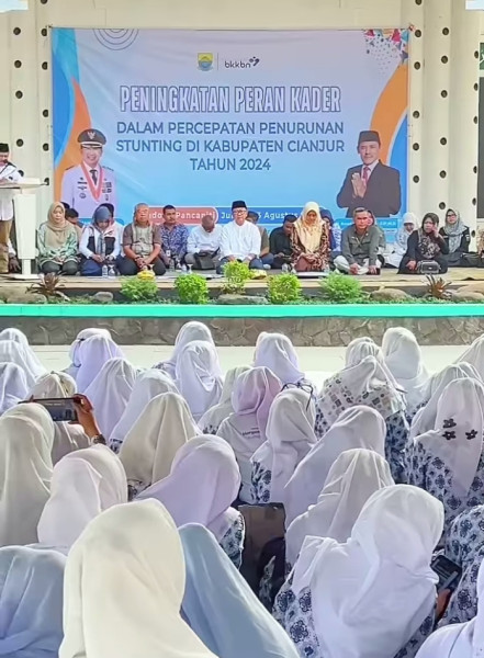 Alhamdulillah selama 3 tahun ini sudah ada 44 Desa bebas stunting dari 16 Kecamatan di Kabupaten Cianjur, dimana hal ini berkat kinerja dari kader posyandu dan semua pihak yang terlibat dari mulai Forkopimcam, pengusaha lokal dan tokoh agama serta yang lainnya.