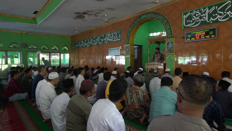 Sumedang-Untuk mendukung kegiatan keagamaan di Kabupaten Sumedang, Pj Bupati Sumedang Yudia Ramli menyerahkan mimbar khutbah dan tongkat khatib untuk Masjid Besar Kecamatan Tomo usai Salat Jumat, 23 Agustus 2024. Bantuan mimbar ini merupakan salah satu bentuk kepedulian pemerintah daerah terhadap kebutuhan fasilitas keagamaan di masyarakat.