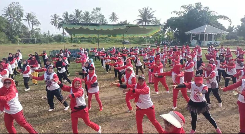 PESAWARAN – Relawan Persatuan Sobat Nanda (Pesona) Pesawaran, kembali menggelar senam CAKEP bersama Nanda Indira di Lapangan Desa Banjar Negeri Kecamatan Way Lima Kabupaten Pesawaran, Minggu (21/7/2024).