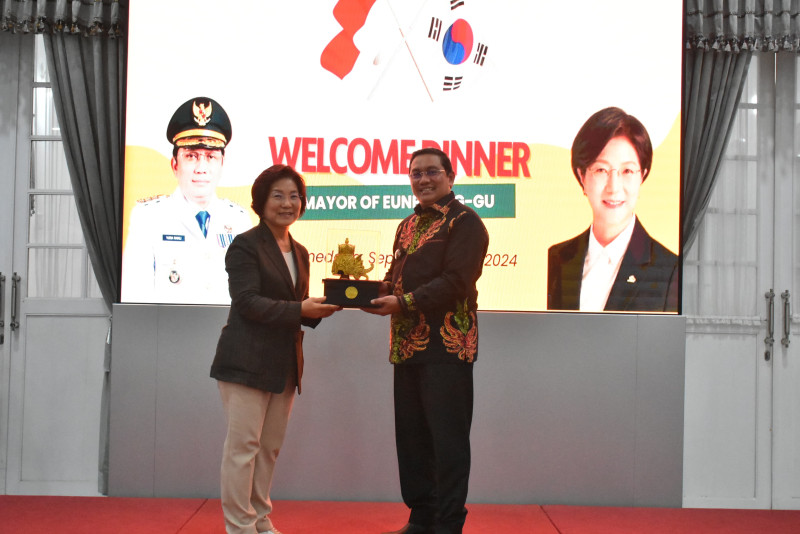 Pj. Bupati Sumedang, Yudia Ramli menerima kunjungan kerja Walikota Eunpyeong-Gu, Korea Selatan, Kim Me Kyung dalam acara _Welcoming Dinner_ di Gedung Negara, Rabu malam (25/9/2024).