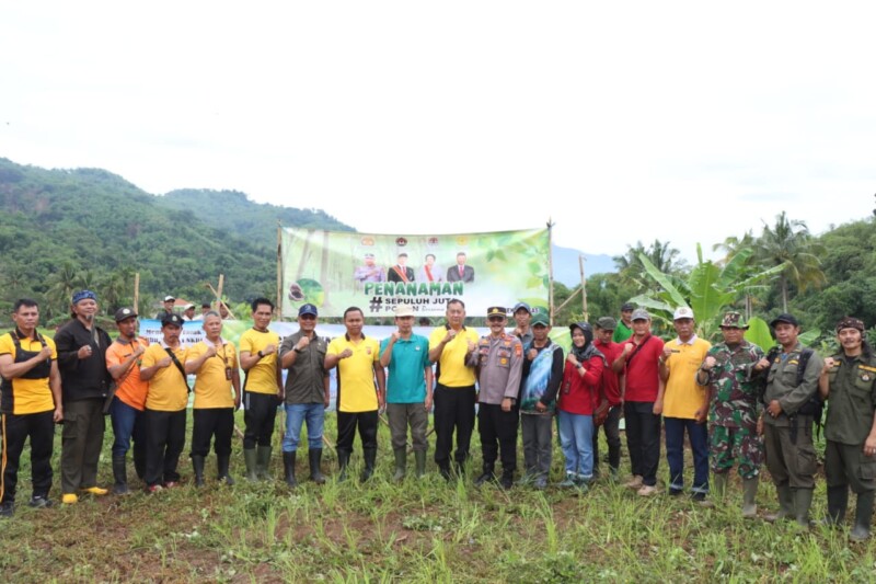 Sumedang -mitrapolisitv.com Kegiatan penanaman sejuta pohon bersama Polri bertempat di Dsn. Sulambitan RT. 01 Rw. 16 Desa Cikondang Kec. Ganeas Kab. Sumedang dimulai pukul 08.15 Wib sd 10.30 Wib dihadiri oleh Kapolres Sumedang AKBP JOKO DWI HARSONO, S.I.K., Wakapolres KOMPOL MELIAWATY, S.H., S.I.K., M.M, Para PJU Polres Sumedang, Kapolsek Ganeas, Forkopimcam Kec. Ganeas, Para Kepala Desa se-kecamatan Ganeas, para Kelompok Tani Hutan, Warga Desa Cikondang Kec. Ganeas Kab. Sumedang, Danpos TNI Ganeas, Adm. Perhutani Sumedang, mahasiswa Unsap Sumedang dan Universitas STAI ALJAWAMI Bandung serta tamu undangan yang hadir sebanyak 105 orang. Jumat (19/01/2024)