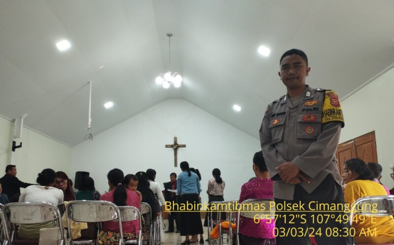Kapolres Sumedang AKBP JOKO DWI HARSONO, S.I.K., M.Hum. beserta Wakapolres Sumedang KOMPOL MEILAWATY, S.H., S.I.K., M.M. melalui Kapolsek Cimanggung KOMPOL KARYAMAN D., S.H., M.H. mengatakan bahwa Pengamanan kegiatan ibadah kebaktian hari Minggu pagi ummat Kristiani di rumah ibadah GPPS Batu Penjuru di pandang perlu dilakukan pengamanan oleh Personel Polsek Cimanggung Polres Sumedang Polda Jabar untuk yang terbuka dan tertup untuk menjaga Hal Yang Tidak di inginkan.