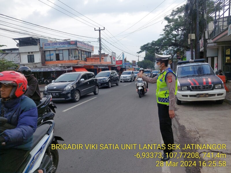 Sat Lantas Polsek Jatinangor Polres Sumedang Polda Jabar, BRIPKA Arya Nugraha,.SH, bersama BRIGADIR Vicky Satya W melakukan giat pengaturan Lalulintas di sore hari yang bertujuan untuk terciptanya Kamseltibcar Lantas dan mengantisipasi terjadinya Laka Lantas bagi masyarakat.