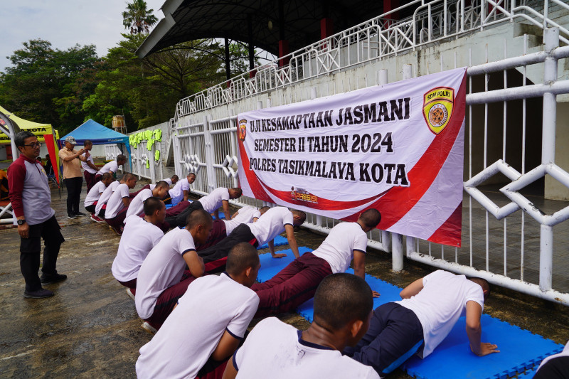 Kapolres Tasikmalaya Kota AKBP Joko Sulistiono, SH.,S.IK.,MH., mengatakan sebelum melaksanakan tes kesamaptaan jasmani personel diperiksa terlebih dahulu mengenai kesehatan antara lain pemeriksaan tekanan darah, saturasi oksigen dalam darah, denyut nadi, tinggi berat badan dan pemeriksaan suhu tubuh. “Tes Kesamaptaan Jasmani meliputi lari 12 menit dilanjutkan dengan push up, sit up, pull up (pria), chinning up (wanita) dan shuttle run,” ujarnya.