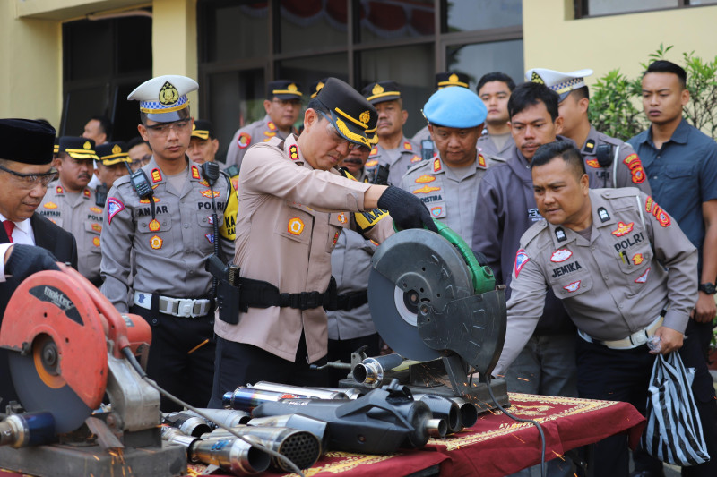 Kapolres Cianjur AKBP Rohman Yonky Dilatha, S.I.K., M.Si., M.H. mengatakan, pemusnahan ini merupakan langkah konkret dalam menanggulangi penggunaan knalpot modifikasi yang menyebabkan kebisingan dan mengganggu ketertiban umum.