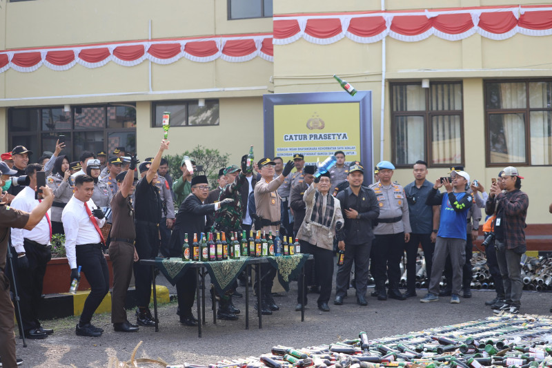 Polres Cianjur Musnahkan Ribuan Knalpot Brong dan Minuman Keras Hasil Razia