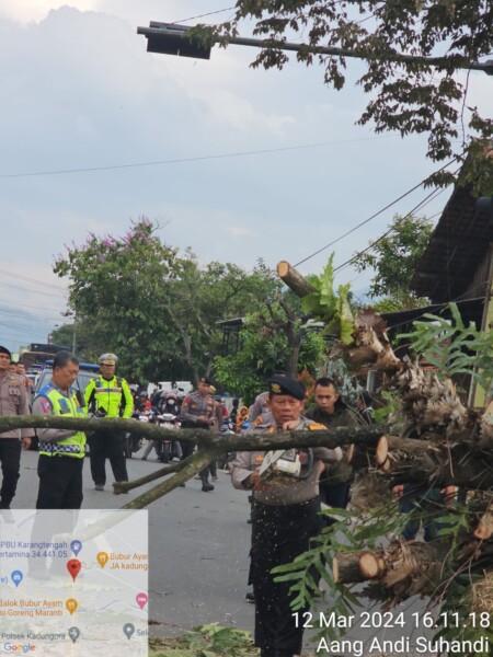 Kapolres Garut AKBP Rohman Yonky Dilatha, S.I.K., M.Si., melalui Kasat Samapta AKP Masrokan saat di konfirmasi membenarkan adanya pohon tumbang yang menutupi Jalan Raya Kadungora Garut dan sudah di tindaklanjuti oleh petugas kepolisian bersama masyarakat.