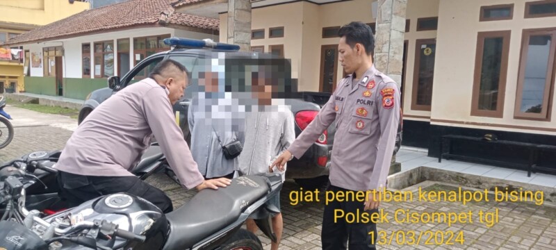 Polsek Cisompet Polres Garut melakukan penindakan kepada 2 unit kendaraan roda dua yang memakai knalpot tidak sesuai spesifikasi teknis / bising / brong.