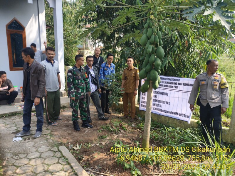 Cimanggung_Sumedang. Bhabinkamtibmas Desa Cikahuripan Polsek Cimanggung Polres Sumedang Polda Jabar AIPTU AHMAD SUBEKTI bersama Kepala Desa Cikahuripan Babinsa dan anggota BPD Cikahuripan telah melaksanakan giat Monitoring Pelaksanaan Pembangunan pembangunan Bronjong Irigasi yang bertempat di dsn cicabe RW 12 Desa Cikahuripan Kecamatan Cikahuripan Kabupaten Sumedang. Senin (20/05/2024).