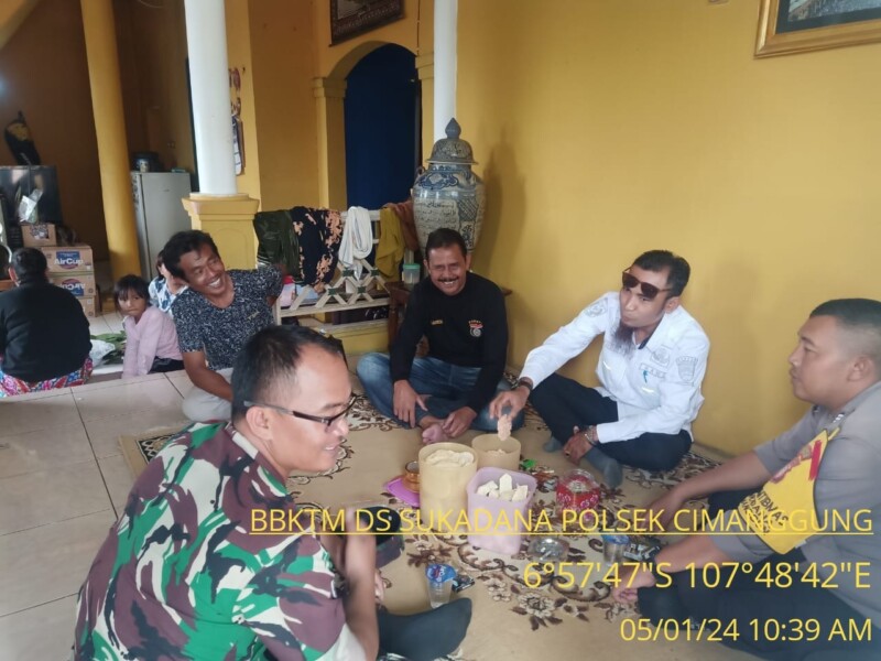Cimanggung_Sumedang.mptv.com Berdasarkan arahan dan Petunjuk Kapolsek Cimanggung KOMPOL KARYAMAN D., S.H., M.H, Bhabinkamtibmas Desa Sukadana Polsek Cimanggung Polres Sumedang Polda Jabar BRIPKA TRI WIDODO dan Babinsa Sertu Ahmad Nursalam , Melaksanakan giat sambang silaturahmi pada warga dusun bunter rt.01 rw 04 Desa Sukadana kecamatan cimanggung kabupaten Sumedang. Jum’at (05/01/2024).