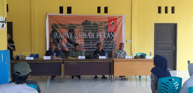 Dikesempatan yang sama Antony Fitra selaku Ketua Bidang Advokasi KPPR menyampaikan Rapat Akbar ini dilakukan dengan tujuan sosialisasi hasil aksi jalan kaki petani Inhu ke istana negara yang berujung audiensi dengan Kementerian Lingkungan Hidup dan Kehutanan (KLHK).